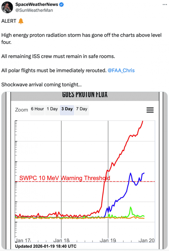 On another note, we are now experiencing the most powerful solar radiation storm to hit the Earth in more than 20 years