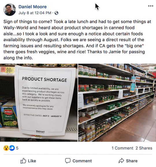 And as I just showed you, it appears that a shortage of canned vegetables has already begun.